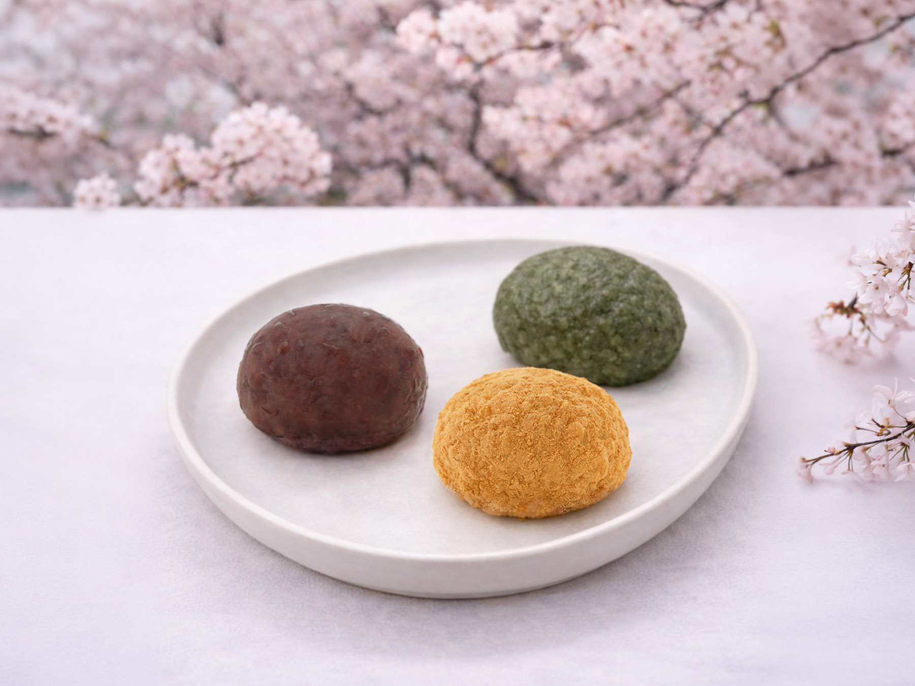 今春は定番の「粒あん」「きな粉」に加えて、「よもぎ」も新発売です。